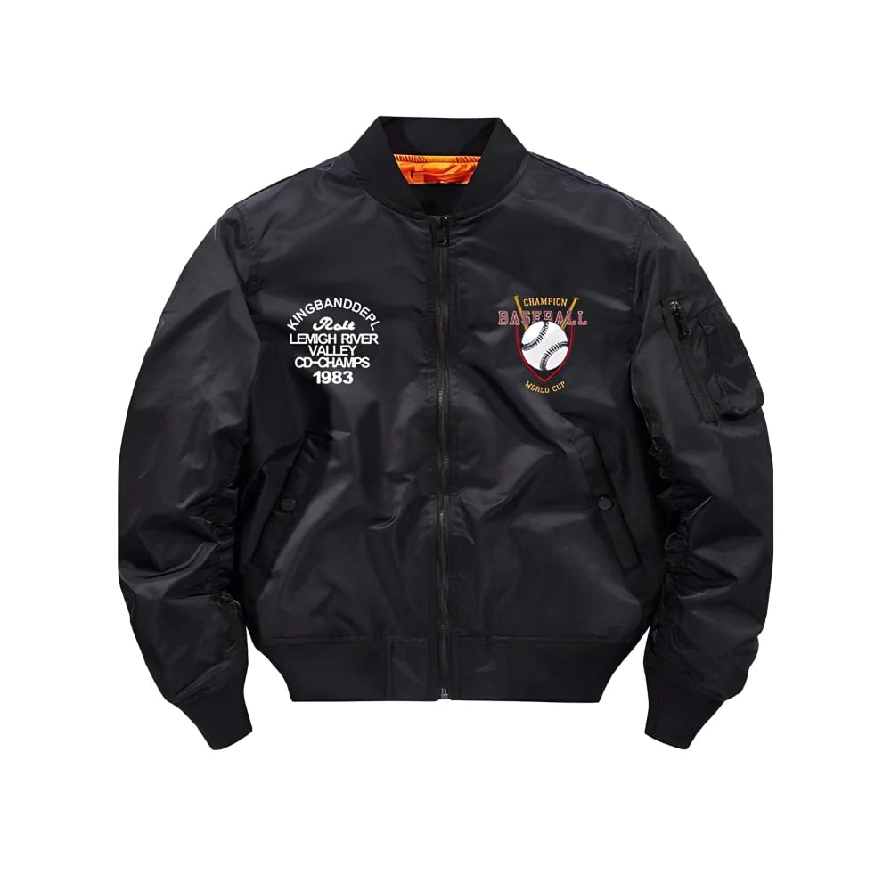 Basé sur le bomber américain modèle MA-1, ce bomber baseball pour homme est unique et original. Son look emblématique des US te donnera une allure masculine et affirmée. Ce bomber inspiré du baseball et de l’armée américaine rassemble les symboles forts des États-Unis .